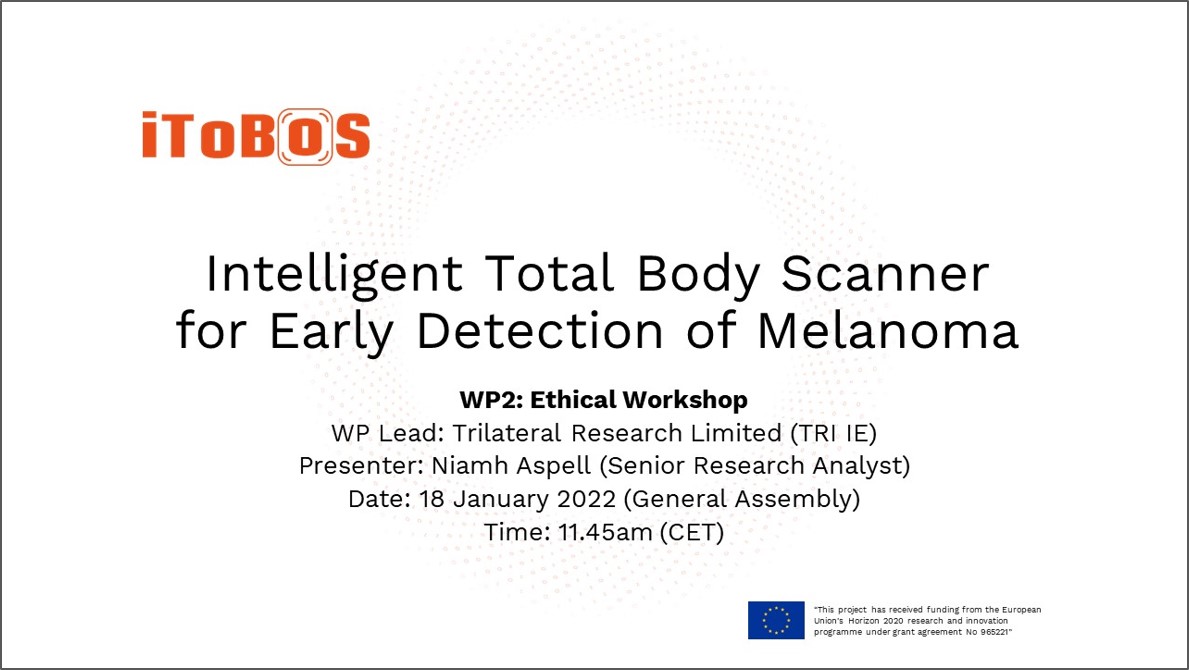 The event was led by Trilateral Research Ltd (TRI). The objective of the workshop was to engage project partners in the ethical risks associated with the development of the iToBoS tools and to work collaboratively to propose mitigation strategies. TRI leads WP2-Privacy, data protection, ethical and societal issues in iToBoS solutions.