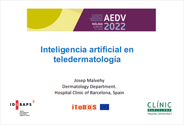 Dr. Josep Malvehy, member of Fundació Clínic per a la Recerca Biomèdica and scientifc partner of the iToBoS Project, was invited to participate, giving the lecture “Inteligencia artificial en teledermatología”. The goals, the challenges and the novel information technologies applied to dermatology of the iToBoS project were presented in this conference.